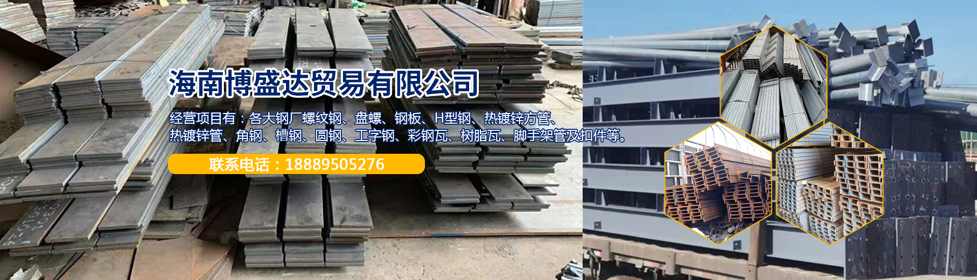 海南博盛達貿易有限公司成立于2018年,注冊資金為500萬元,現辦公地址:海南省文昌市文城鎮文東路雅心公寓2樓。 公司經營項目有:各大鋼廠螺紋鋼、盤螺、鋼板、H型鋼、熱鍍鋅方管、熱鍍鋅管、角鋼、槽鋼、圓鋼、工字鋼、彩鋼瓦、樹脂瓦、腳手架管及扣件等。 公司始終以"質量第一,服務至上,價格實惠"為企業發展宗旨;堅持誠信、高效、合作共贏理念,擁有一支專業工作團隊,合作過諸多優質工程隊伍。案例有:中鐵二十二局、中鐵二十三局、湖南火電建設有限公司、新疆庫爾勒市泰隆建筑有限責任公司......